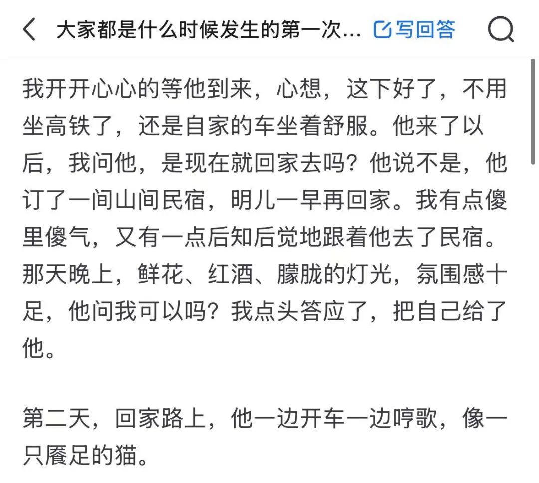 鍋學(xué)有其獨(dú)特的文本特征。硬糖君選取了一份流傳較廣的鍋學(xué)資料:“不知什么時(shí)候老公醒了,看見我淚眼朦朧的樣子,像極了三月沾染露水的花苞,喉結(jié)滾動后,讓我狠狠綻放了?!庇蔡蔷J(rèn)為這不是正版鍋學(xué)。首先,這段描述中的形容詞雖多,但不夠生僻,精致感過強(qiáng),“淚眼朦朧”換成“哭得厲害”“不知所措”會更符合鍋學(xué)風(fēng)格。其次,海哥哥喉結(jié)滾動后通常會有互動場景。更重要的是,平底鍋在描述夫妻生活時(shí)用詞樸素含蓄,追求生活化。在鍋學(xué)里,性生活被稱為“在一起”“欺負(fù)”“內(nèi)個(gè)”,“探索彼此”已經(jīng)是比較正式的表達(dá),“狠狠綻放”更像是鍋學(xué)家自己創(chuàng)作的內(nèi)容。