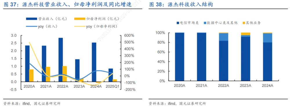 2020 - 2024年,源杰科技營業(yè)收入及歸母凈利潤波動(dòng)較大,未來幾年預(yù)期逐漸平穩(wěn)。
