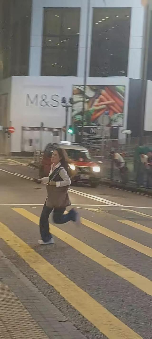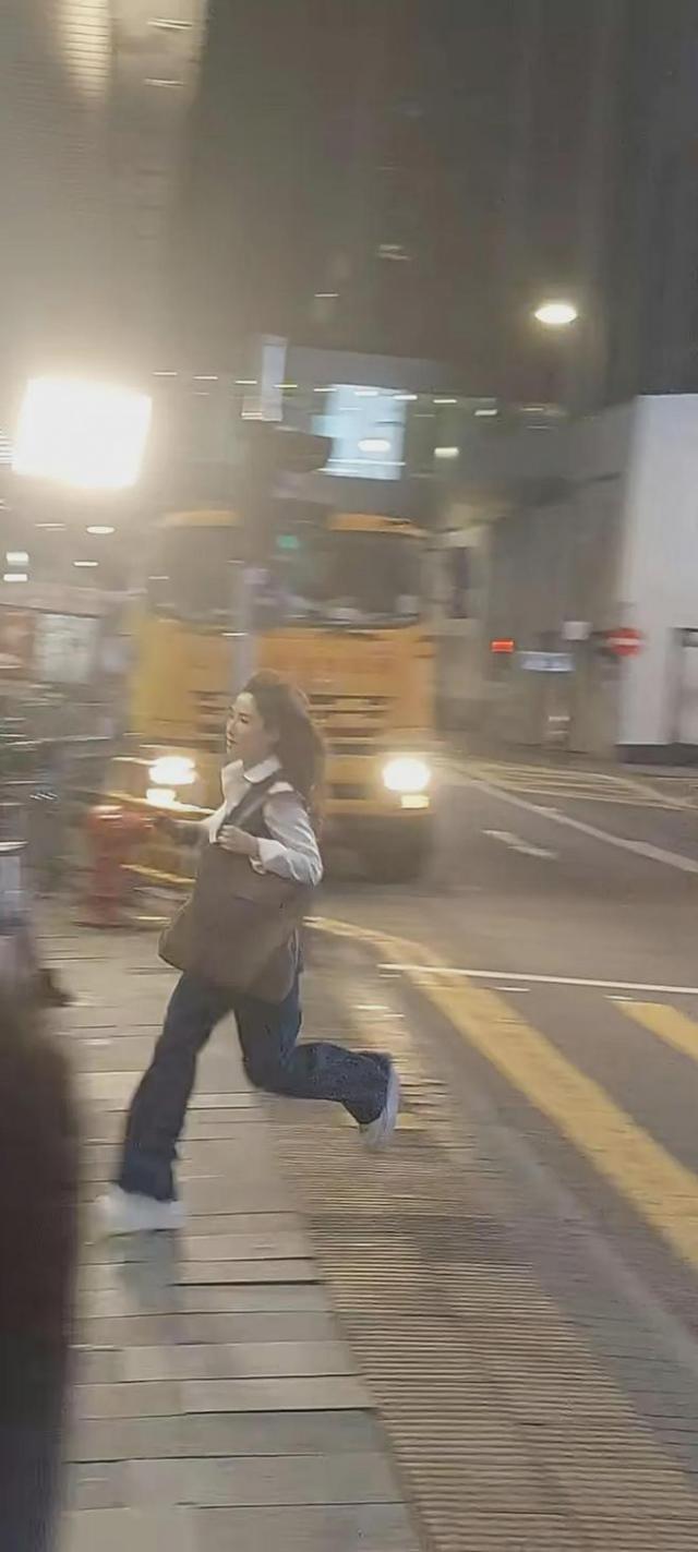 李施嬅正在拍攝一場跑過馬路的戲份。(小紅書截圖)