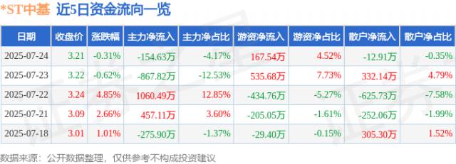異動快報:*ST中基(000972)7月25日早盤觸及漲停板