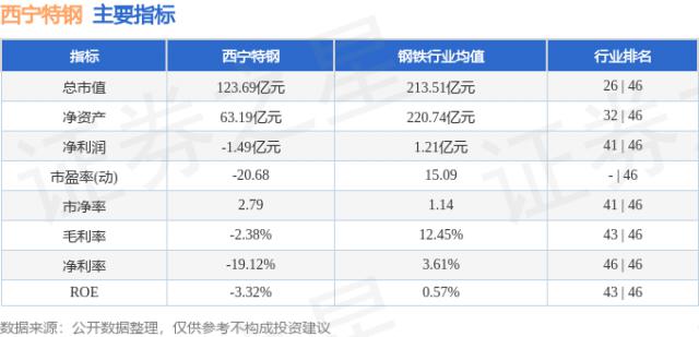 西寧特鋼主要指標及行業(yè)內(nèi)排名如下: