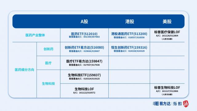 易方達(dá)指數(shù)產(chǎn)品線有完善的醫(yī)藥產(chǎn)品矩陣,能為投資者配置醫(yī)藥行業(yè)提供體系化方案。