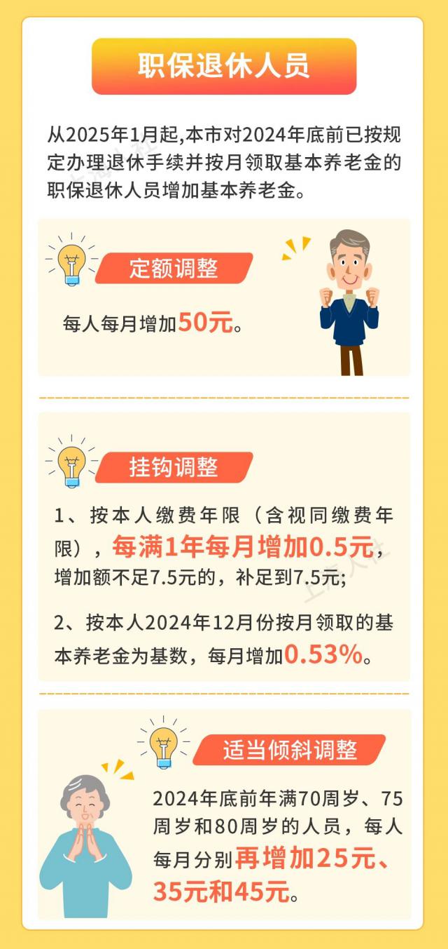 市人社局表示,依據(jù)國家和本市相關(guān)規(guī)定,且經(jīng)人力資源社會保障部、財政部批準(zhǔn),自2025年1月起,本市為2024年底前按規(guī)定辦理退休手續(xù)并按月領(lǐng)取基本養(yǎng)老金的職保退休人員增加基本養(yǎng)老金。同時,本市城鄉(xiāng)居保基礎(chǔ)養(yǎng)老金也于2025年1月起進(jìn)行調(diào)整。