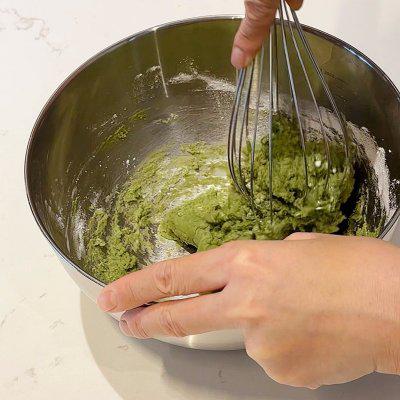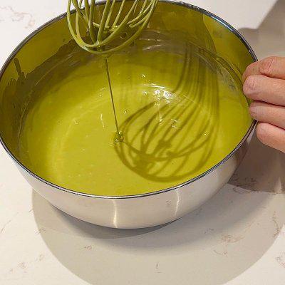 3、加入蛋黃,攪拌成細(xì)膩的蛋糕糊