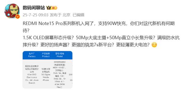 紅米R(shí)EDMI Note15 Pro系列新機(jī)入網(wǎng),預(yù)計(jì)8月登場!