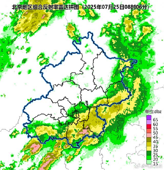 據(jù)氣象北京消息,7月24日8時(shí)至25日8時(shí),全市平均降水量55.3毫米,城區(qū)平均41.0毫米。最大降水量出現(xiàn)在平谷掛甲峪,達(dá)185.0毫米;最大降水強(qiáng)度出現(xiàn)在密云流河峪,24日23時(shí)至25日00時(shí)降水59.9毫米。最近一小時(shí)最大降水量為通州胡家垡村,36.9毫米。
