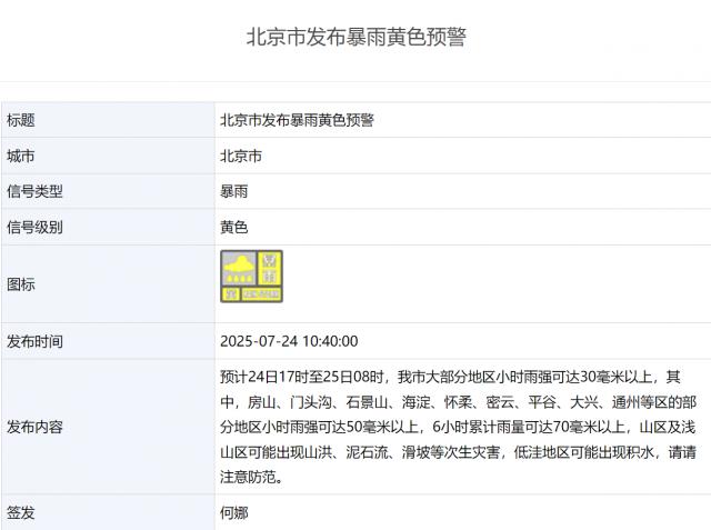 北京發(fā)布4項(xiàng)預(yù)警:暴雨、雷電、山洪、地質(zhì)災(zāi)害來襲!