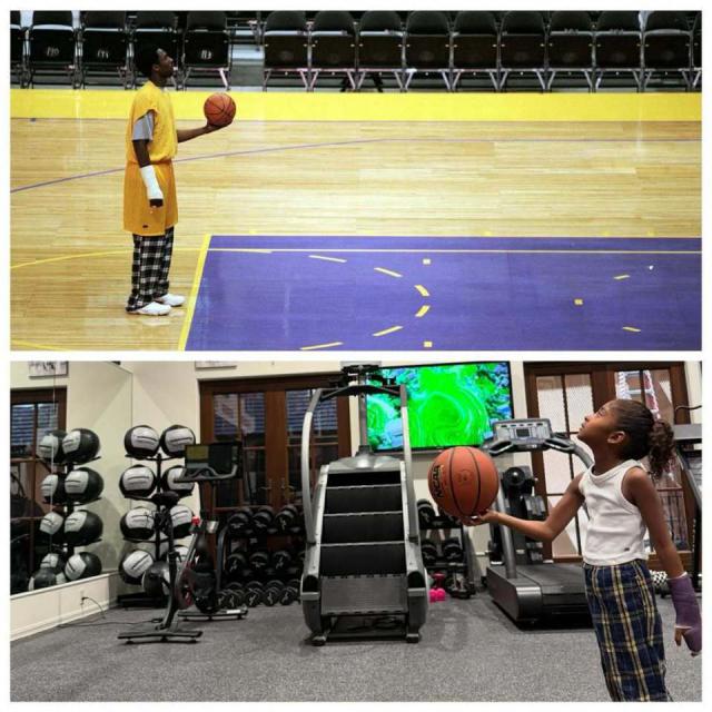 瓦妮莎曬出的畫面中,卡普里和父親科比動作一致,兩人所穿褲子極為相似,手臂還都戴著石膏??ㄆ绽飶涂痰氖?999年科比的標志性瞬間,當時科比手腕骨折,即便穿著睡褲也要堅持訓練。瓦妮莎配文稱:“有其父必有其女,卡普里 - 科比 - 布萊恩特?!?/p>