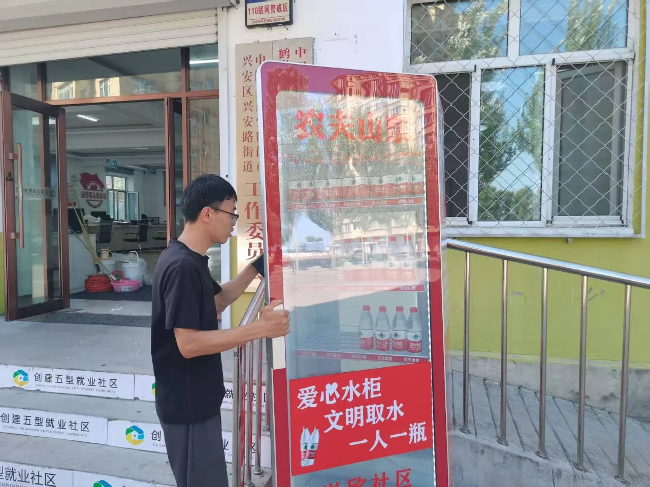 近日,鶴崗市興安區(qū)興安路街道興欣社區(qū)設(shè)立了鶴崗市首個(gè)免費(fèi)愛(ài)心水柜,為高溫下堅(jiān)守崗位的戶外勞動(dòng)者帶來(lái)了清涼,此舉獲得了廣泛好評(píng)。
