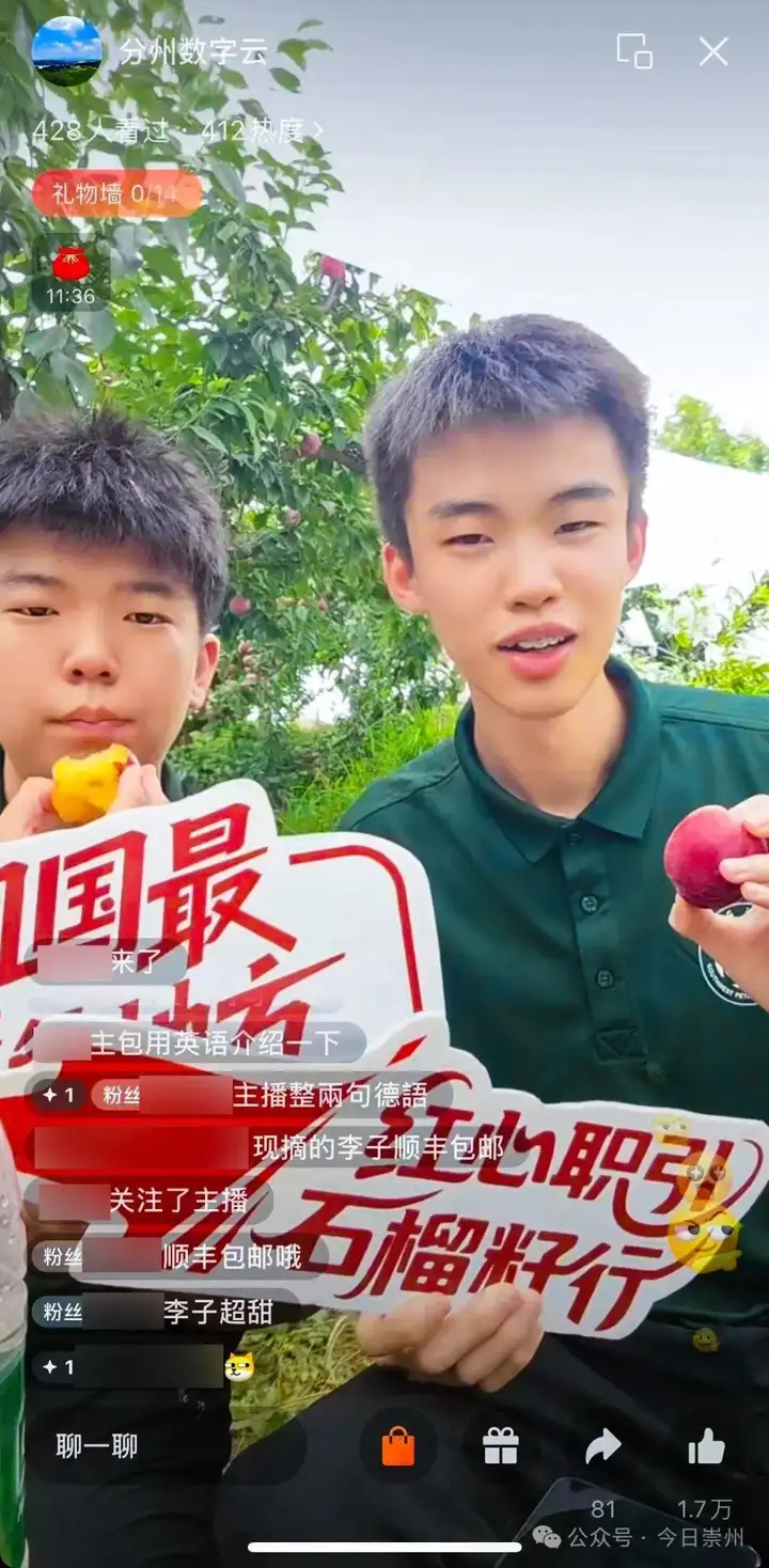 為了幫助果農(nóng)拓寬紅寶石李的銷售渠道,崇州市委人才辦、共青團(tuán)崇州市委、懷遠(yuǎn)鎮(zhèn)政府?dāng)y手合作,精準(zhǔn)對(duì)接資源,積極聯(lián)系西南石油大學(xué),邀請(qǐng)其青年志愿者團(tuán)隊(duì)加入助農(nóng)隊(duì)伍,共同策劃并開展了“分州數(shù)字云”公益直播活動(dòng)。
