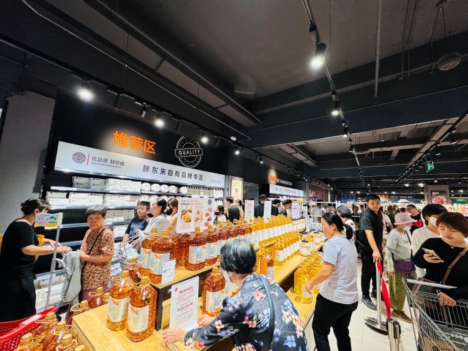 在本地化方面,“津味”商品滿足本地口味,同時陳列了多款胖東來自有品牌商品,與永輝自有品牌專區(qū)形成高品質(zhì)商品集合。