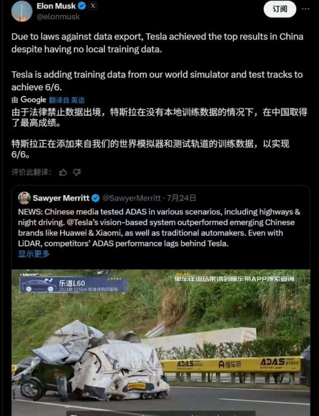 這一結(jié)果讓馬斯克第一時(shí)間在X上炫耀,稱這還是特斯拉在沒有本地訓(xùn)練的情況下做到的,還表示要爭(zhēng)取6項(xiàng)全過。而鴻蒙智行、問界、智界則只回應(yīng)了“不予置評(píng)”。