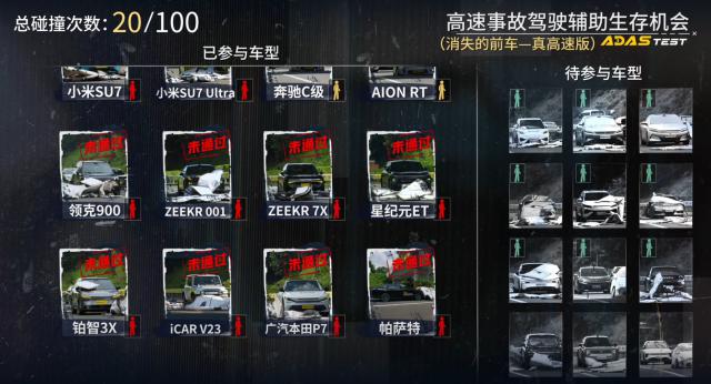 光是這些測(cè)試畫面,就足以吊起大家的胃口,懂車帝這次的噱頭營造得很足。然而,測(cè)試結(jié)果卻出人意料,在高速事故場(chǎng)景模擬中,表現(xiàn)最好的是特斯拉的兩款車。Model 3在“撞豬”項(xiàng)目失敗,其余5個(gè)項(xiàng)目通過;Model X在臨時(shí)施工場(chǎng)景失敗,其余5個(gè)項(xiàng)目也通過。而大家印象里智能駕駛較好的華為、理想、小鵬等廠商,通過率都沒有特斯拉高。