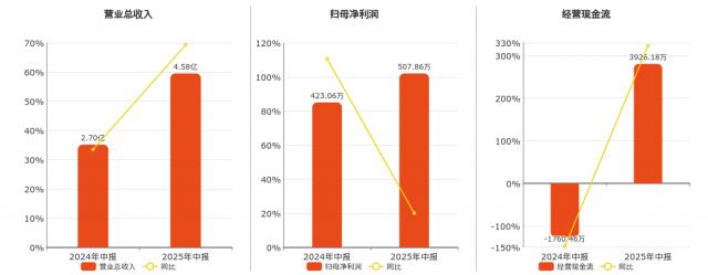 公司營業(yè)總收入達(dá)到4.58億元,歸母凈利潤為507.86萬元,經(jīng)營活動(dòng)現(xiàn)金凈流入為3926.18萬元。