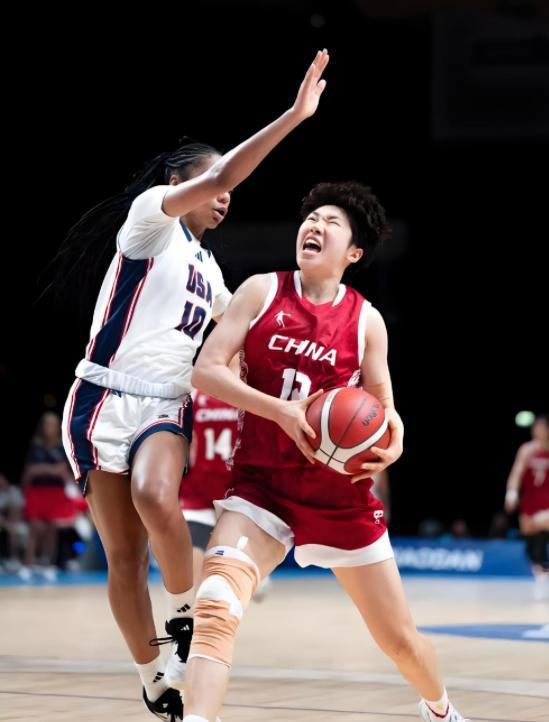 本場(chǎng)比賽,中國(guó)大運(yùn)女籃依舊派出陳玉婕、田媛媛、李星諾、唐子婷、劉禹彤的首發(fā)陣容。比賽開場(chǎng)后,唐子婷狀態(tài)火熱,連續(xù)命中兩記三分球,延續(xù)了上一場(chǎng)比賽的良好手感。然而,美國(guó)隊(duì)加強(qiáng)了對(duì)劉禹彤的包夾防守,使得劉禹彤攻筐受阻,美國(guó)隊(duì)借此打出一波小高潮,一度領(lǐng)先中國(guó)隊(duì)7分。關(guān)鍵時(shí)刻,陳玉婕挺身而出,里突外投連得7分,幫助中國(guó)隊(duì)在上半場(chǎng)以42 - 42與美國(guó)隊(duì)?wèi)?zhàn)平。