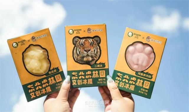 東北虎林園與馬迭爾攜手合作,推出了3款獨具特色的聯(lián)名文創(chuàng)冰棍,巧妙地將東北虎特色與美味結(jié)合在一起。
