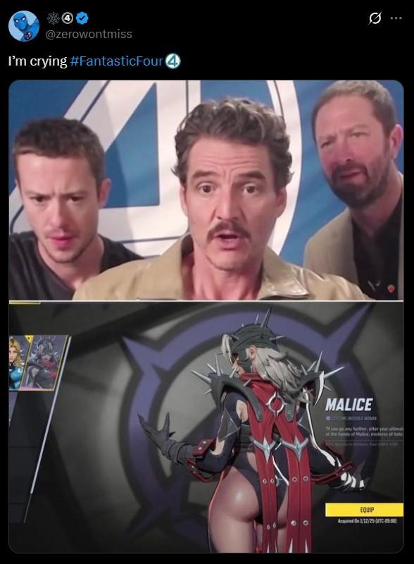 除了積極為影片宣傳,神奇四俠還為漫威授權(quán)游戲《漫威爭(zhēng)鋒》站臺(tái)。當(dāng)里德博士看到游戲中隱形女的行頭時(shí),眼前一亮,還建議服化道的小伙伴可以借鑒。
