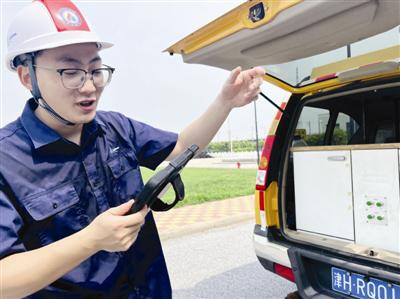 陳光所在小組昨日上路巡查。工作兩年的他,負責(zé)轄區(qū)內(nèi)燃氣市政管網(wǎng)巡線,檢查管線敷土狀態(tài)、燃氣設(shè)施完整性等,還要定期檢查閥井、凝水缸等設(shè)施,進行泄漏巡檢,把控第三方施工風(fēng)險。