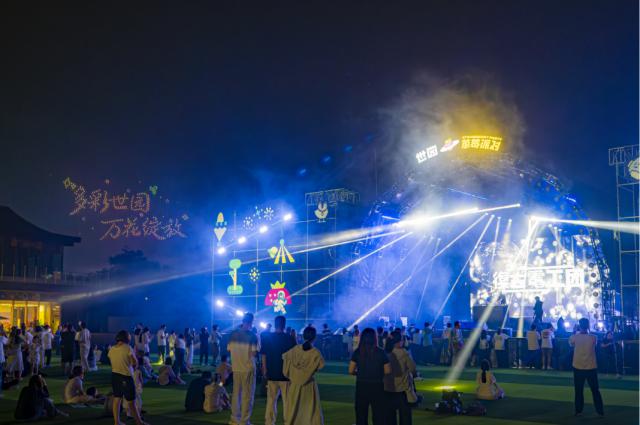 作為“世園之夜”消夏避暑節(jié)的重要部分,6月27日至9月14日,世園之夜消夏避暑節(jié)在世園國際旅游度假區(qū)舉辦。在中國館、國際館及周邊區(qū)域,音樂演出、啤酒節(jié)、文化市集、特色餐飲、體育競技、世園燈光秀、無人機秀等活動不停,打造了集“食、娛、體、秀”為一體的沉浸式夜間旅游產品,讓游客體驗“打卡好看、社交快樂、玩法新鮮”的世園生活方式。