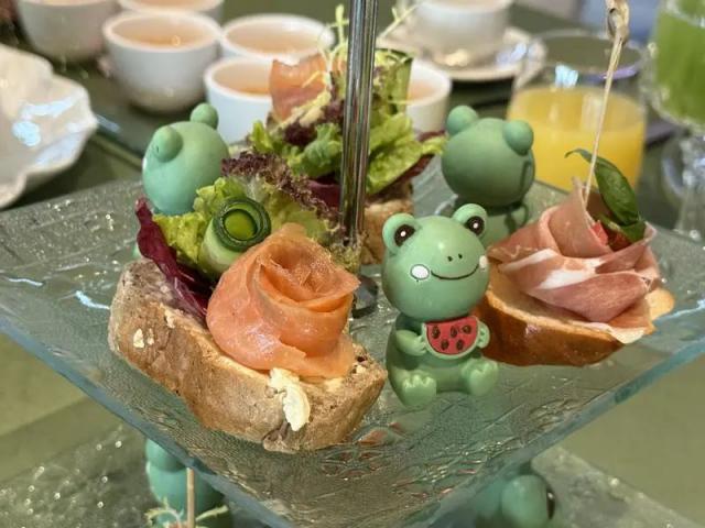 一塊淡綠桌布、一套精致茶具,再配上小巧的茶點(diǎn),這樣一套下午茶套組蘊(yùn)含著廚師多年的西點(diǎn)餐飲制作經(jīng)驗(yàn)。比賽現(xiàn)場(chǎng),滬上知名下午茶品牌紛紛亮相。上海馬勒別墅的劉爭(zhēng)爭(zhēng)帶來(lái)“繽紛時(shí)刻”主題作品,金色餐具搭配綠植點(diǎn)綴,高雅的配色盡顯海派人文底蘊(yùn);王寶和大酒店延續(xù)“蟹大王”特色,以“荷韻”為主題,用傳統(tǒng)船點(diǎn)與蟹形印糕,生動(dòng)展現(xiàn)出清涼的夏日風(fēng)情。
