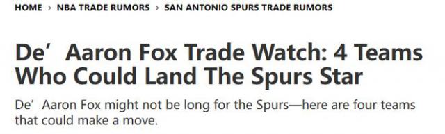 剛來一年或被交易!美媒曝光馬刺交易福克斯四大潛在方案