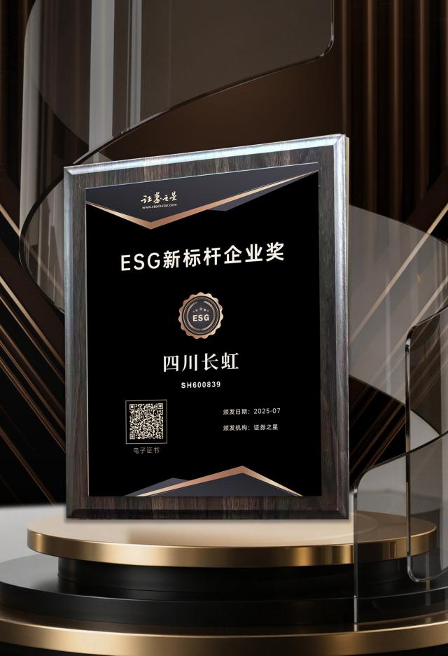 四川長(zhǎng)虹榮膺證券之星ESG新標(biāo)桿企業(yè)獎(jiǎng)