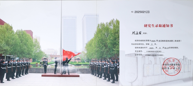 背負(fù)壓力,他開始第二次備考,將悲痛化為動力。2025年,他以筆試第二、復(fù)試第三的成績考上中央司法警官學(xué)院!這份通知書,是他在絕境中挺立的宣言。
