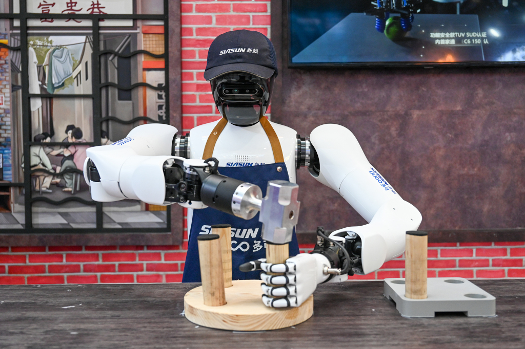 小賣部、小吃街、修理攤、文化站......一條充滿上海特色的機(jī)器人弄堂出現(xiàn)在26日開幕的2025世界人工智能大會現(xiàn)場。在WAIC里2025弄,機(jī)器人可謂多才多藝、各顯其能。它們可以寫書法、舞龍、擊鼓,也能當(dāng)服務(wù)員幫忙調(diào)飲品、做美食,還具備精細(xì)維修、食品加工等“藍(lán)領(lǐng)”技能。