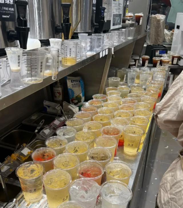 部分網(wǎng)友對外賣大戰(zhàn)缺乏具體感受。比如“瘋狂星期六”時,中午12點去古茗,就已有1000多單,不叫號了,店員只做檸檬水,大家圍一圈,手長的先喝。網(wǎng)上也有類似分享,有網(wǎng)友說茶飲店像慈善機構(gòu)發(fā)救濟糧,這條評論獲1.2萬人共鳴。