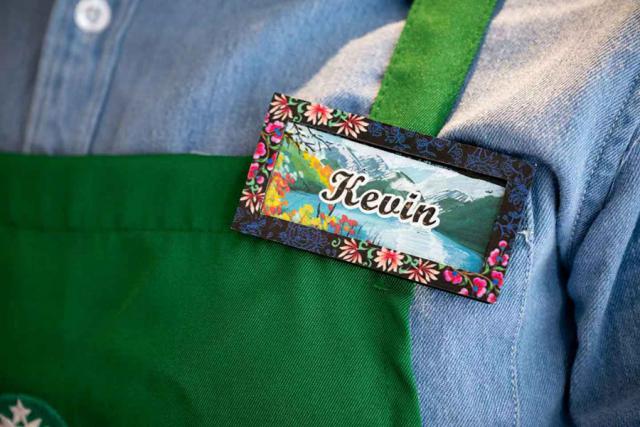 店內(nèi)還因地制宜,店員胸牌融入了藏羌刺繡非遺傳承人沈艷燕的作品,同時準(zhǔn)備了九寨主題的杯套和透卡。店鋪支持“啡快”服務(wù),可提前點(diǎn)單到店自取。