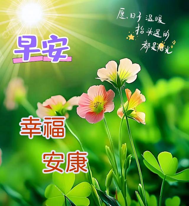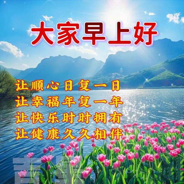 心寬知足歲月好,歡歌笑語(yǔ)人不老,身體健康最珍貴,每日祝福準(zhǔn)時(shí)到。愿我們幸福快樂(lè)永相伴!清晨第一聲問(wèn)候,帶來(lái)健康、好運(yùn)與財(cái)氣;清晨第一個(gè)祝福,擁著快樂(lè)、幸福與平安。在這美好的一天,把祝福送給朋友們,愿好運(yùn)陽(yáng)光照耀著你!親們,早安!