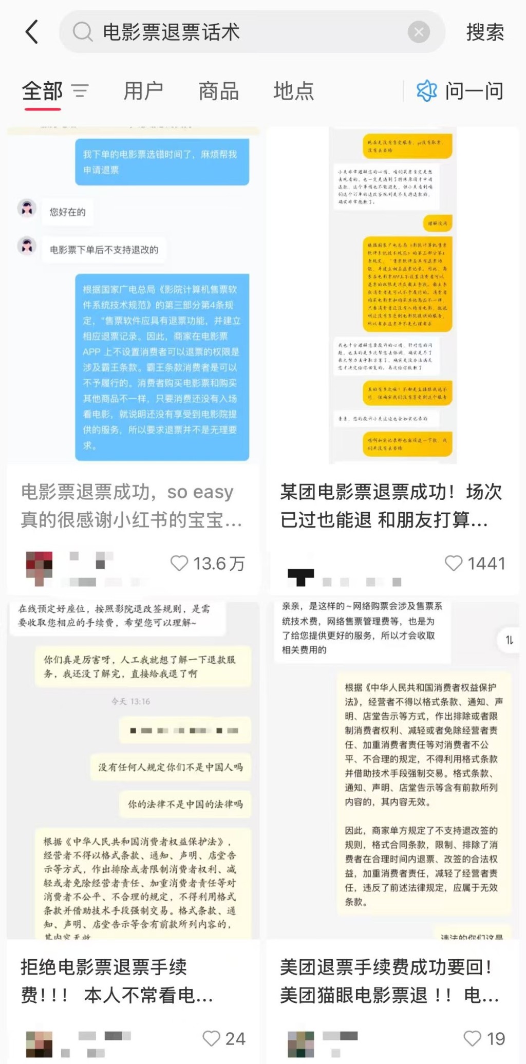 社交平臺上也有很多網(wǎng)友吐槽退票難。甚至有網(wǎng)友分享退票小妙招,比如向客服投訴并告知國家廣電總局出臺的《影院計算機(jī)售票軟件系統(tǒng)技術(shù)規(guī)范》規(guī)定,把“售票軟件應(yīng)具有退票功能,并建立相應(yīng)退票記錄”的文字發(fā)給客服,就能順利退款等。