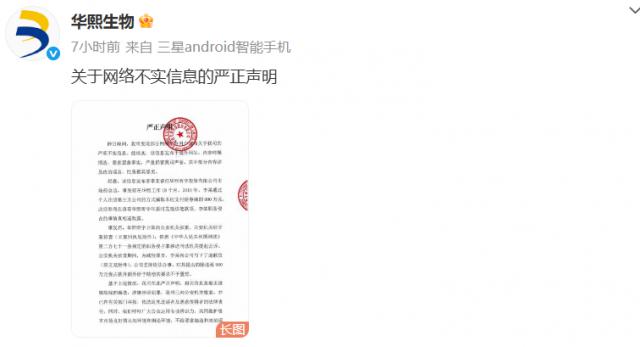 7月26日,華熙生物官方微博發(fā)布《關(guān)于網(wǎng)絡(luò)不實信息的嚴正聲明》,稱昨日晚間發(fā)現(xiàn)部分網(wǎng)絡(luò)平臺用戶發(fā)布關(guān)于公司的嚴重不實信息。經(jīng)核實,信息發(fā)布于境外網(wǎng)站,內(nèi)容純屬捏造。