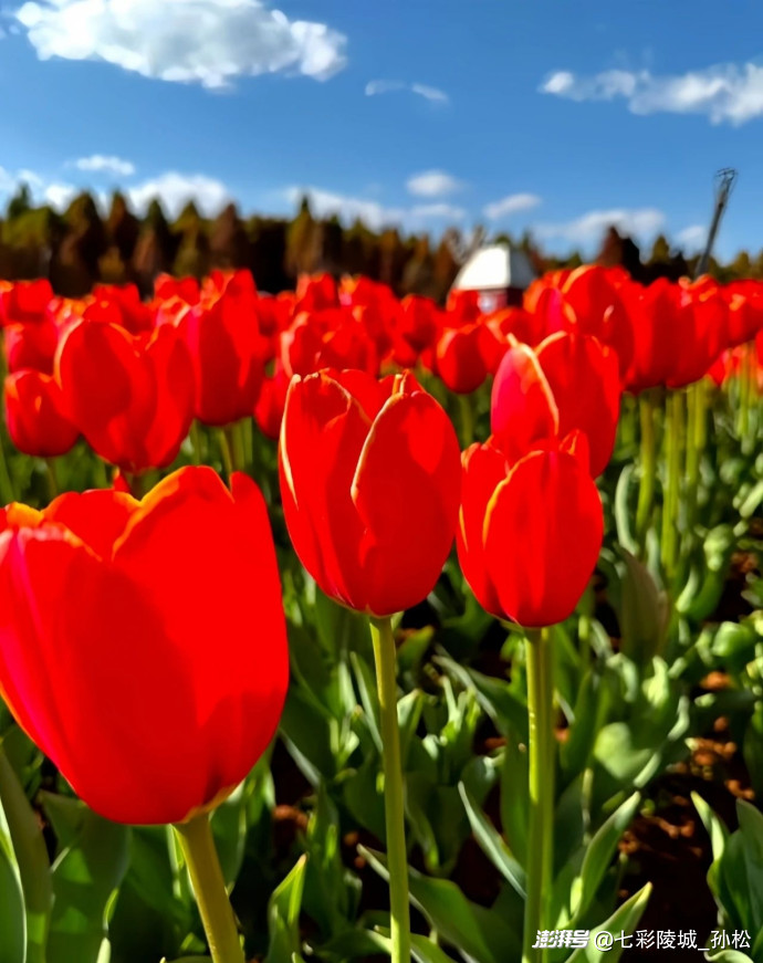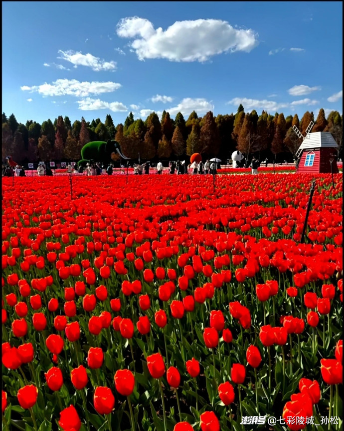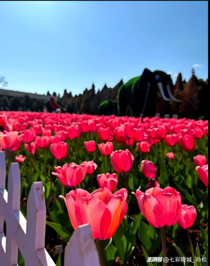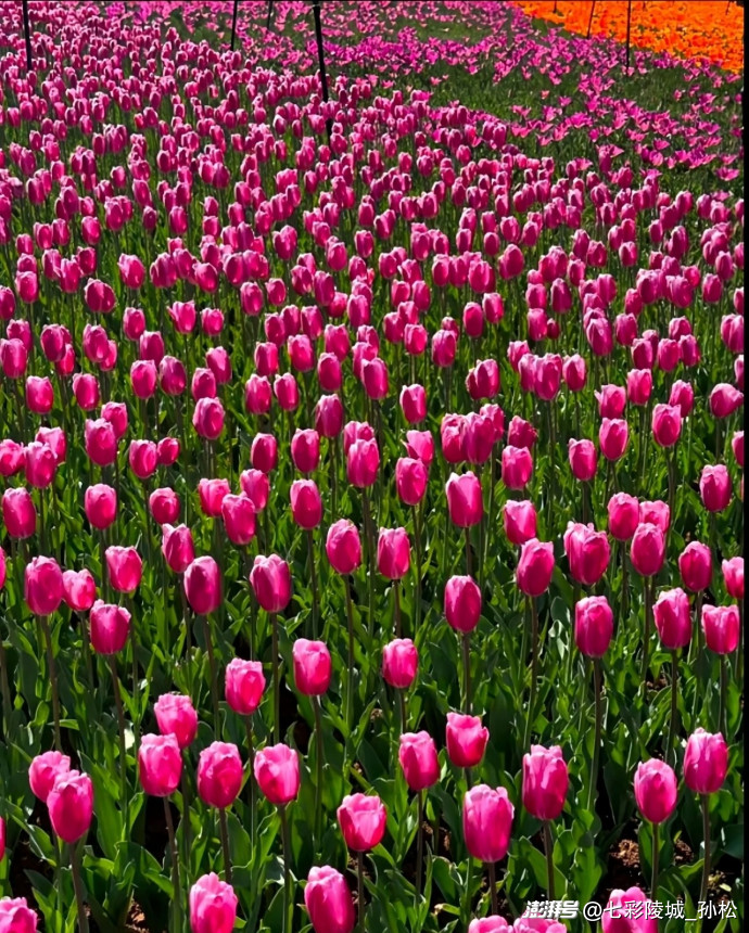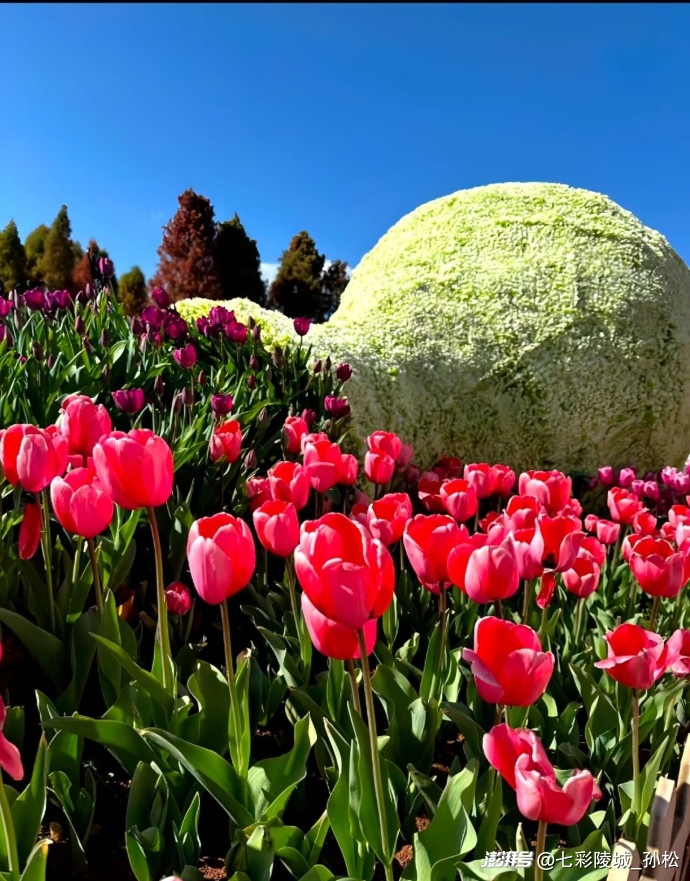 暮春時節(jié),暖風輕拂城郊,我邂逅了那片郁金香花海的壯麗綻放。首先映入眼簾的是一片火紅,宛如有人打翻了調色盤,將最濃郁的朱砂傾灑在綠毯之上。花株身姿挺拔,莖稈筆直,花朵形似酒杯。外層花瓣如燃燒的火焰般舒展,內層則暈染著柔和的橘粉,好似被晨露浸潤的綢緞,在陽光下散發(fā)著蜜色的光芒。湊近細嗅,能聞到一股淡淡的甜香,不像玫瑰那般濃烈,倒像是剛出爐的蜂蜜蛋糕,還夾雜著泥土與青草的清新氣息。繞過那片熱烈的紅,一片金黃的花海撲面而來。這些郁金香宛如被陽光凝固的精靈,花瓣薄如蟬翼,近乎透明,邊緣還帶著極淡的奶白,如同少女裙擺上的蕾絲花邊。微風拂過,花田涌起金色的波浪,連空氣都隨之顫動。蜜蜂鉆進花蕊,翅膀的嗡鳴聲中,花莖輕輕搖曳,姿態(tài)優(yōu)雅,宛如一群翩翩起舞的芭蕾舞者?;ê_吘壍囊荒ㄗ献顬槊烂?。那是帶著灰調的丁香紫,仿佛被月光浸泡過。這些花株較矮,但花朵密集,花瓣層層疊疊,猶如握緊的紫色拳頭突然松開,露出里面鵝黃的花蕊。一個穿著碎花裙的小女孩跑過去,發(fā)梢沾上了花瓣。她蹲下與紫郁金香平視,仰起臉,眼睛明亮如星子,說道:“媽媽,它們在對我笑!”我沿著田埂漫步,鞋尖踢到幾片枯黃的落葉,想必是去年深秋留下的。那時這里一片荒蕪,泥土靜靜地沉睡,等待春雨喚醒球莖。而如今,數(shù)萬株郁金香絢爛盛開,宣告著生命的輝煌。紅的張揚,黃的明媚,紫的含蓄,還有許多叫不出名字的雜色。白底紅斑的猶如少女的胭脂,粉紫漸變的好似天邊的云霞。它們相互簇擁,卻不妨礙彼此生長,反而讓花海更加生機勃勃。夕陽西下,花海的影子被拉長。我坐在田邊的木凳上,看著光影在花瓣上流動,蜜蜂滿載而歸,風將花香傳得更遠。此刻,我終于明白為何人們稱郁金香為“春天的信使”。它不僅用色彩裝點大地,更以熱鬧而克制的綻放告訴我們,生命的美好并非獨自綻放,而是眾多花朵相約,將春天變成一場永不落幕的盛宴。暮色漸濃,我起身離開。回頭望去,花海在晚風中輕輕搖曳,宛如流動的彩虹,又似大地寫給天空的情詩。我知道,這份關于春天的記憶,會和那些絢爛的花瓣一起,在歲月中永遠鮮活。
