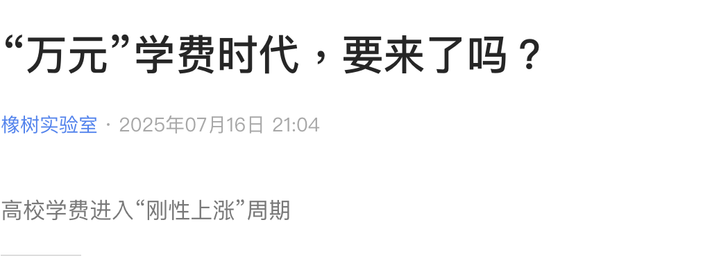 2025年夏天,大學(xué)標(biāo)志性的“5000元時代”已然結(jié)束,大學(xué)學(xué)費(fèi)或許將邁入“萬元時代”。