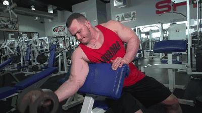 動(dòng)作要領(lǐng):將胸口頂住斜板,腋窩卡在墊子上方。單手反握啞鈴進(jìn)行單邊訓(xùn)練,舉到最高點(diǎn)時(shí)將手腕往小指方向歪,能額外增加20%的泵感!