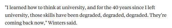 渣打銀行 CEO Winters 在采訪中被問到會給年輕人什么學(xué)習(xí)建議時,他坦言: