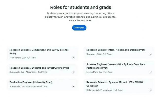 比如像 Meta 這樣的公司越來越關(guān)注機(jī)器學(xué)習(xí) (ML) 和人工智能 (AI) 的發(fā)展,意味著他們可能會創(chuàng)造出專門針對人工智能開發(fā)的新工作。感興趣的同學(xué)可以關(guān)注一下 Meta 官網(wǎng),看是否有適合自己的機(jī)會。