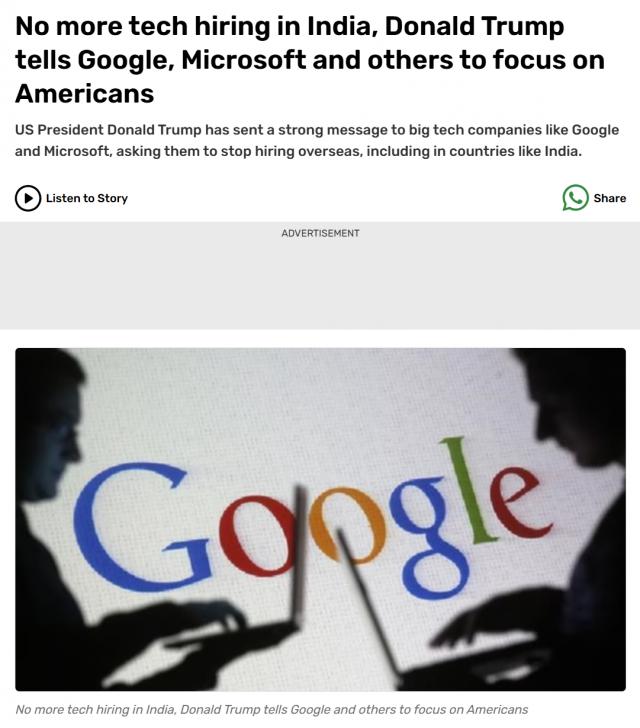 不過截至目前為止,硅谷的幾家科技巨頭都沒有發(fā)布公開聲明直接回應(yīng)特朗普的“停止印度招聘”呼吁。