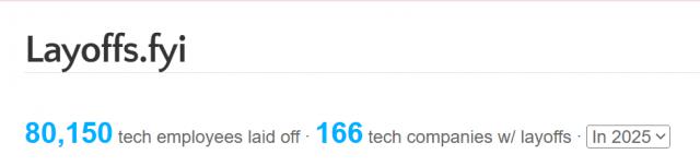 截至 7 月 25 日,2025 年科技行業(yè)裁員總?cè)藬?shù)已達(dá)到了 80,150 人次(猶記得今年 5 月初,這個數(shù)字還是 5w+)