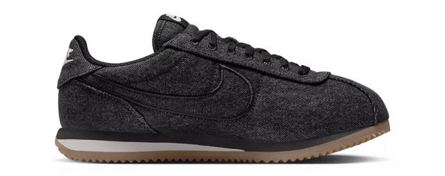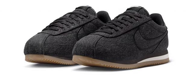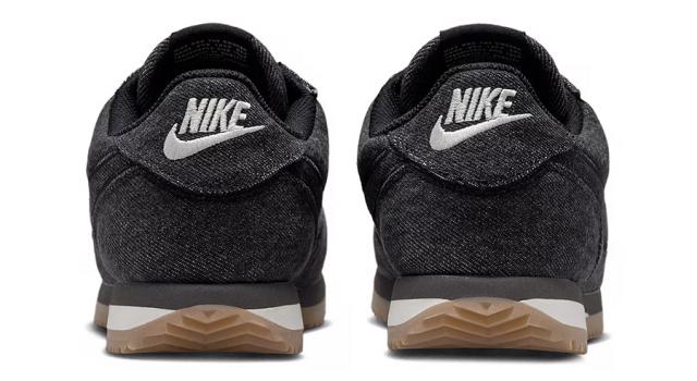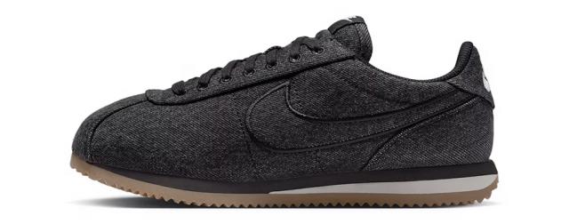 除與Levi's聯(lián)名,NIKE也常將牛仔用于鞋面設(shè)計(jì)。繼前兩年水洗淺藍(lán)色版本后,日前又為經(jīng)典Cortez帶來(lái)黑色牛仔鞋面版本。