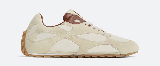 2025早秋系列中,Bottega Veneta推出全新運(yùn)動(dòng)鞋Orbit Flash。鞋面繼承Orbit運(yùn)動(dòng)鞋的網(wǎng)狀結(jié)構(gòu),用柔軟輕質(zhì)的絨面革和尼龍呈現(xiàn)不同風(fēng)格。