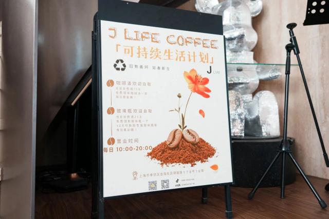 在 Jlife 店里,任意消費滿一定數(shù)額,還可以領(lǐng)取咖啡渣和玻璃瓶??Х仍梢猿蔀樘烊怀魟?,玻璃瓶則可以成為插花藝術(shù)的點綴,讓可持續(xù)的生活方式從這里開始。