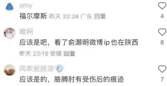 放大照片能清楚看到那個(gè)人胳膊肘處的疤痕,不少網(wǎng)友認(rèn)定這就是俞灝明。而且,還有細(xì)心的網(wǎng)友注意到俞灝明IP也在陜西,看來他又去探班王曉晨了。