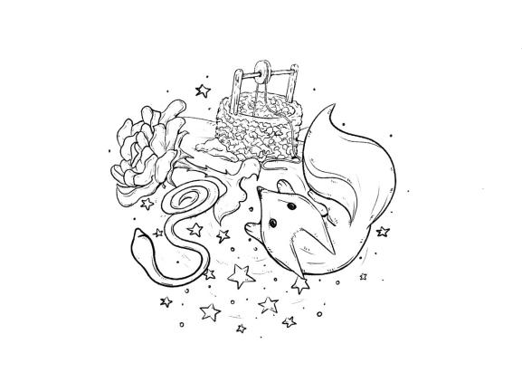 “我”的形象來(lái)自《小王子》第26章,由花、水、蛇、狐貍、星星構(gòu)成,它們相互區(qū)分又密契如圓,或許這就是梁劍老師所論之“際”。小王子渾沌的世界因大家而多彩分明,馴養(yǎng)將各個(gè)世界聯(lián)系起來(lái),成長(zhǎng)就是不斷走出自身又復(fù)歸自身。