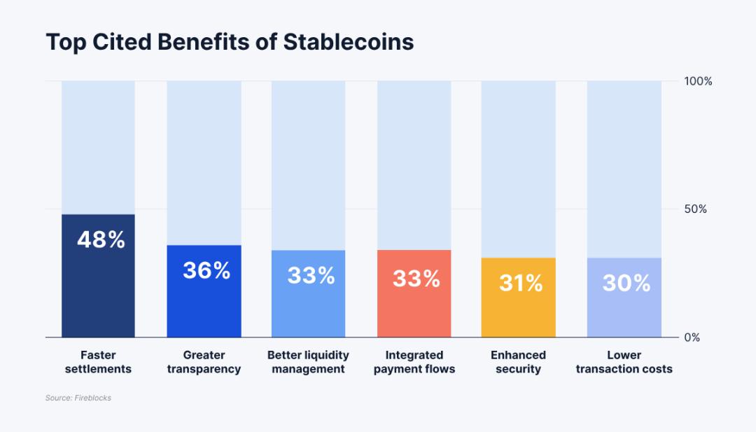 其次,流動性也是關(guān)注因素。在亞洲,采用穩(wěn)定幣的最大動機(49%)是進入新市場,其中流動性(41%)被認為是關(guān)鍵優(yōu)勢。