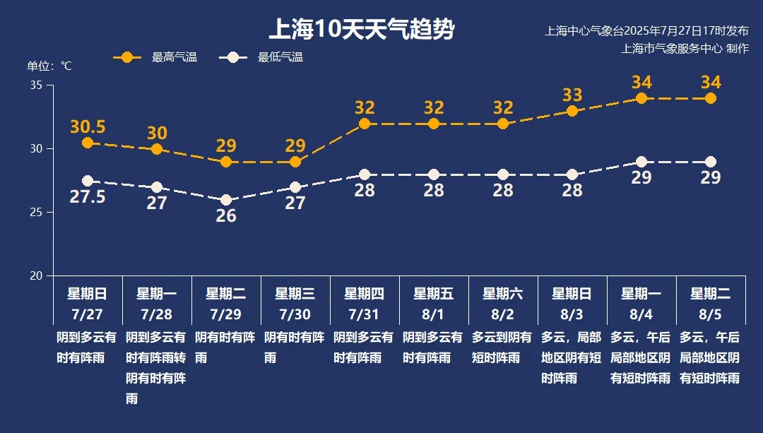 7月27日,上海天氣以陰到多云為主,時不時會下一陣雨,但持續(xù)時間不長,雨量分布也不均勻。
