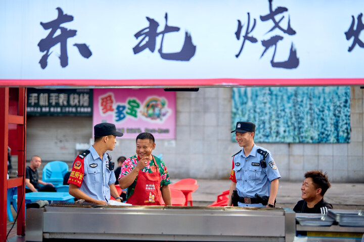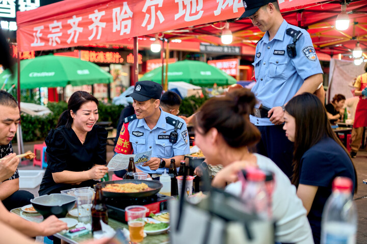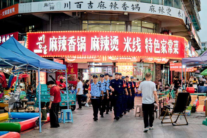 市公安局山海關(guān)分局南關(guān)派出所興華警務(wù)室位于古城熱鬧的夜市商圈。旅游旺季來臨,警務(wù)室的民輔警充分整合義警、內(nèi)保力量、社區(qū)網(wǎng)格員等群防群治隊(duì)伍,根據(jù)社會(huì)面實(shí)際情況,他們時(shí)而在擁擠的人流中維持秩序,時(shí)而仔細(xì)檢查攤位的安全隱患,時(shí)而耐心調(diào)解消費(fèi)糾紛,用責(zé)任與擔(dān)當(dāng)為“夜經(jīng)濟(jì)”撐起了“平安傘”。