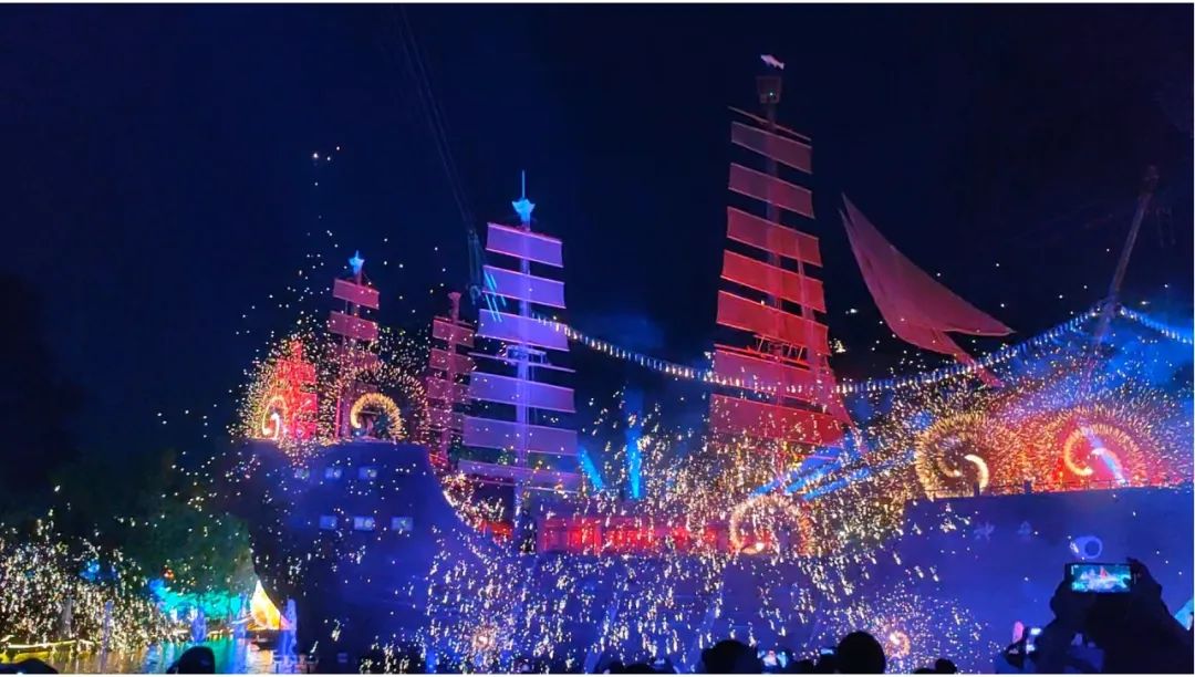 當(dāng)漫天金絲在夜幕上炸裂開來,肉眼看比任何視頻畫面都要震撼。現(xiàn)場的觀眾不約而同地“哇”出聲,和我同行的親友紛紛表示:“光看這個(gè)就值回票價(jià)。”