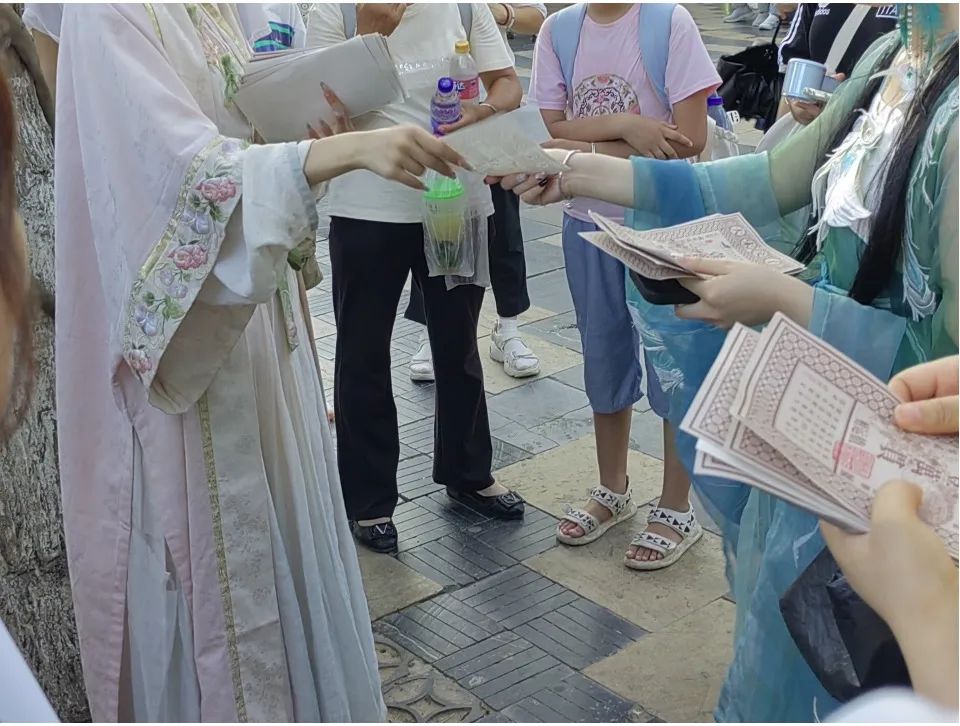 在這里和NPC互動做任務(wù),得到的銀票可以兌換小禮品或優(yōu)惠券。走在園中,許多人都穿著不同朝代的漢服,大家一起cos古人。小時(shí)候背過的成語、讀過的經(jīng)典,化為眼前的風(fēng)景,變成游戲的樂趣。